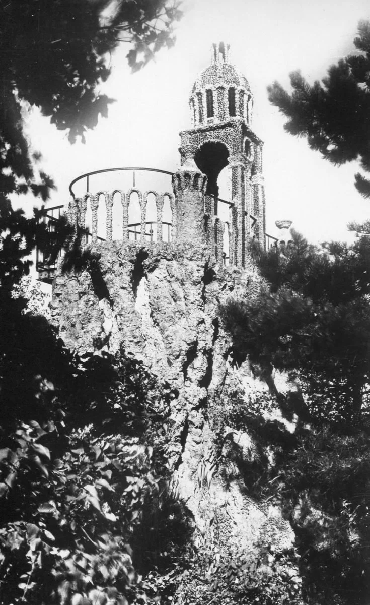 Sur le rocher creusé par le frère Grataloup, Frère François construit en 1878 un belvédère de 12 mètres de haut.
