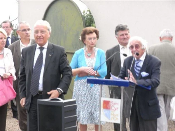 Personnalités présentes : Georges Berthon, Président de l’association Louis Touchagues – Muguette DINI, Sénatrice, Marraine du site de l’ermitage – Marc Grivel, Maire de St-Cyr au Mt d’Or – Anne Hertz, Adjointe à la Culture, au Patrimoine et à la communication de St-Cyr au Mt d’Or . Max Vincent, Conseiller Régional et Maire de Limonest.
